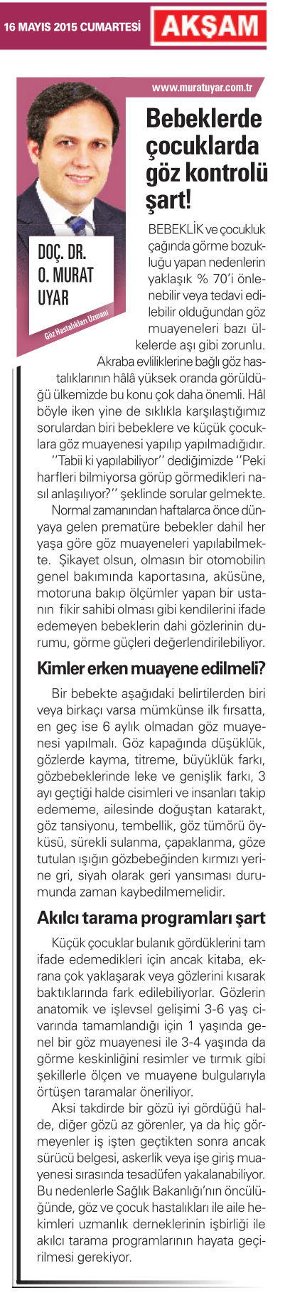 BEBEKLERDE VE ÇOCUKLARDA GÖZ KONTROLÜ ŞART!